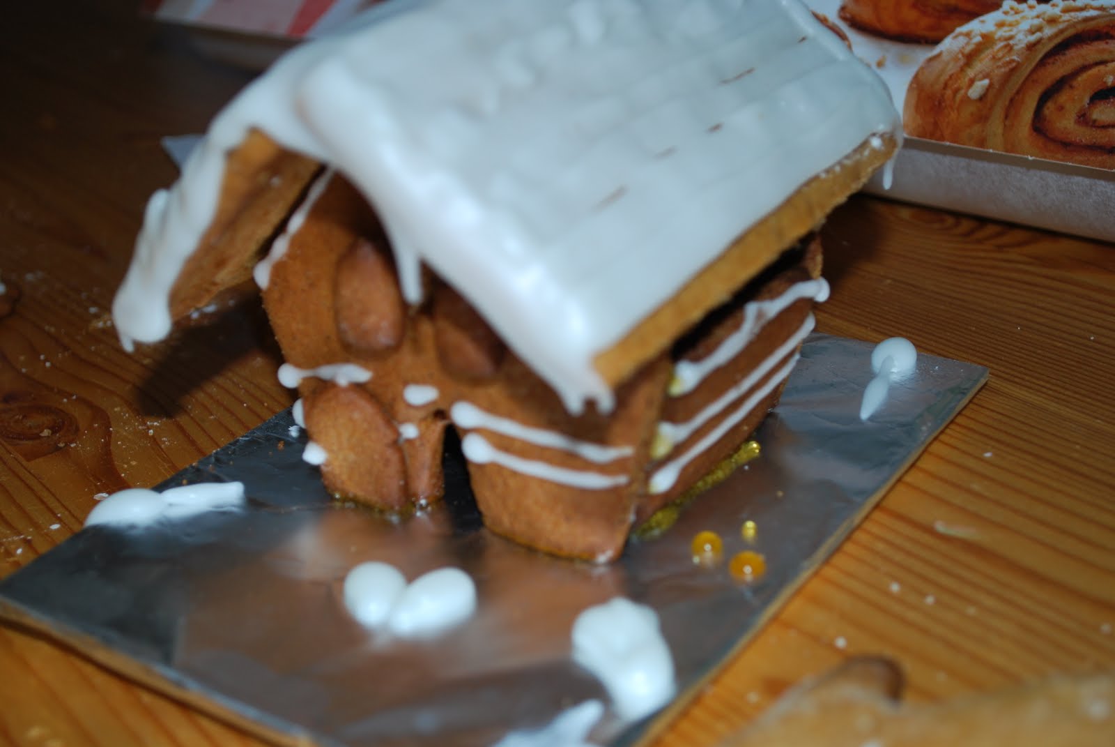 Ett stackars hus glömde jag att dekorera....så det bor hemma hos mej :) Gjorde alla dekorationer innan jag monterade ihop i år. Annars brukar jag göra tvärtom. Men detta fungerade också bra!